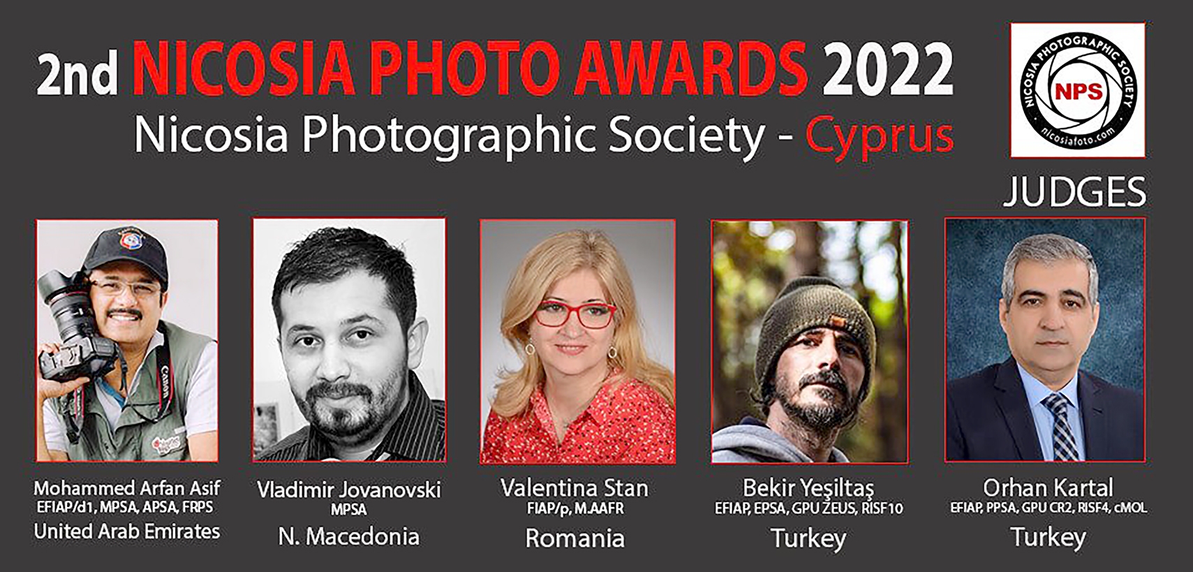 Uluslararası Fotoğraf Sanatı Federasyonu, Amerika Fotoğraf Derneği, Dünya Fotoğrafçılar Birliği sponsorluğunda gerçekleşecek olan 1st International circuit FOTOMAN 2022 yarışmasına 9 ülkeden 9 jüri Kuzey Makedonya, Romanya, Gürcistan, Mısır, İtalya, Türkiye, Cezayir, Kıbrıs, ve Bulgaristan arasında yer alacak. Ayrıca KKTC yapılacak olan Uluslararası 2nd NICOSIA PHOTO AWARDS 2022 yarışmasına Seçici kurul olarak çağrıldı.