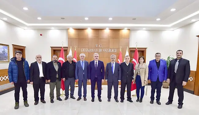 İl Valisi Münir Karaloğlu ile DÜ Rektörü Mehmet Karakoç’u ziyaret eden gazeteciler, GYGD’nin düzenlediği dayanışma gecesine katıldı.