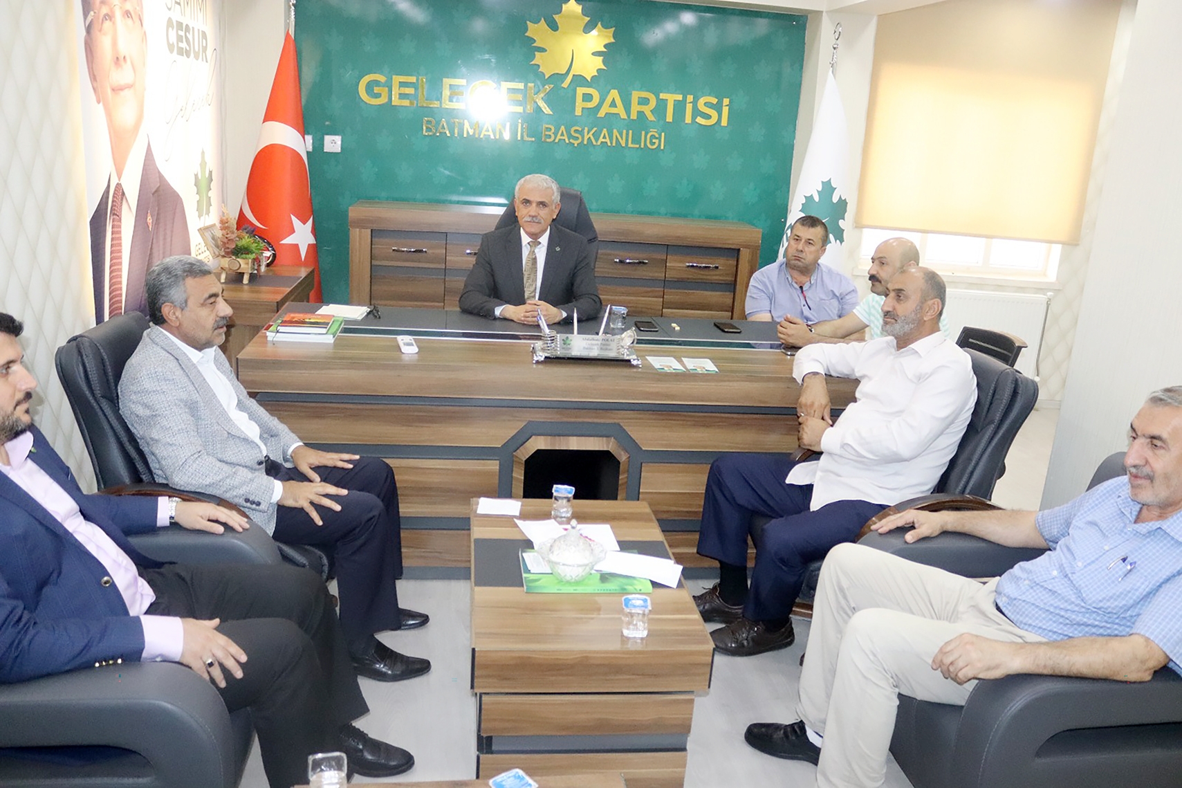HÜDA-PAR İl Başkanı Davut Şahin, HÜDA-PAR Merkez İlçe Başkanı Muhammed Şerif Durmaz ve beraberlerinde bulunan parti yöneticileriyle beraber Gelecek Partisi Batman İl Başkanı Abdulbaki Polat'a ziyarette bulundularw