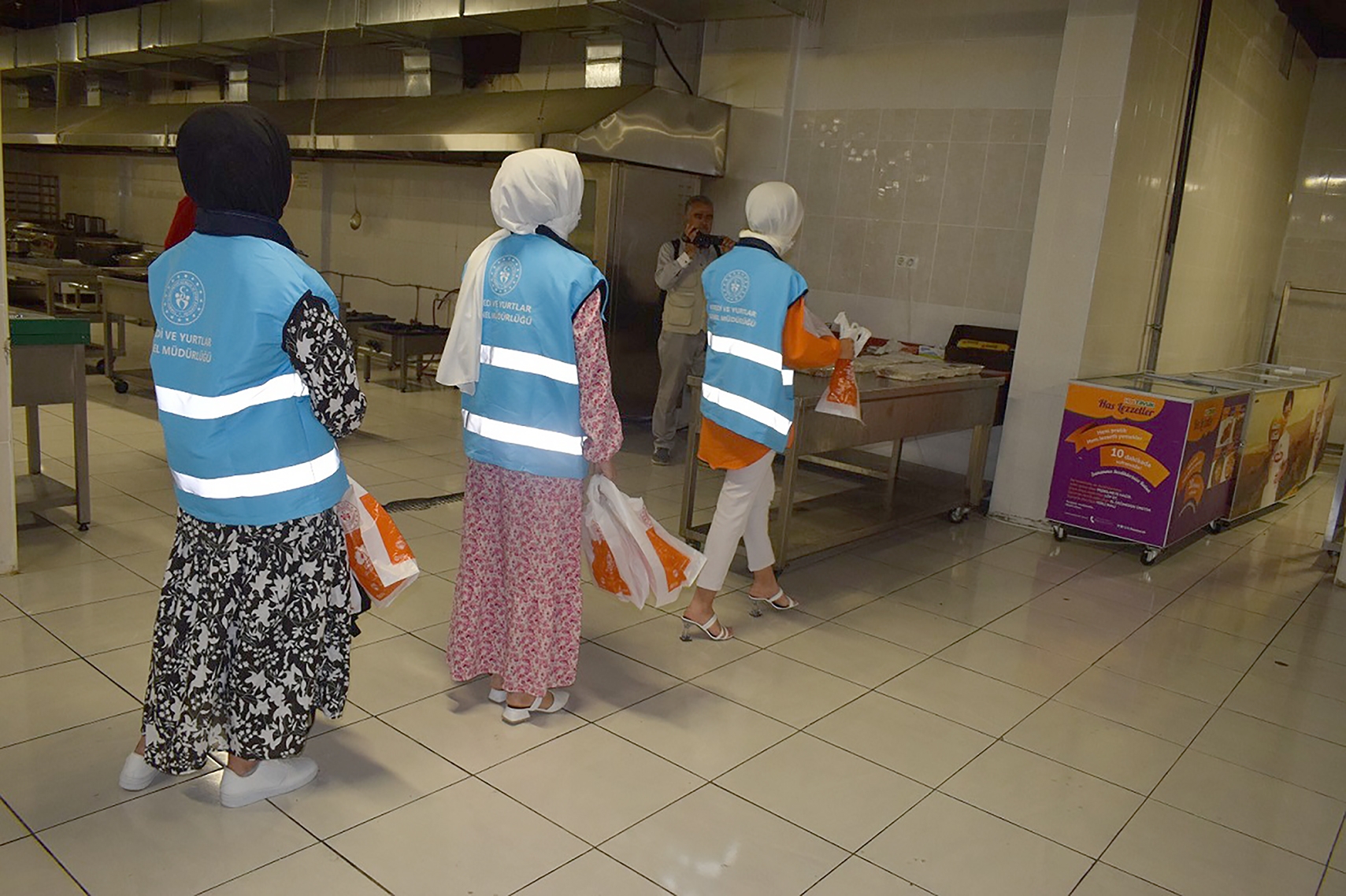Öğrenci yurtlarında kalan kız öğrenciler gönüllü olarak, ‘Komşum Projesi’ kapsamında yurtlarda pişen sıcak yemekleri hijyenik olarak muhafaza edip, aynı hassasiyet paketleyip, yiyecekleri ihtiyaç sahibi ailelere ulaştırıyorlar.