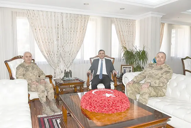 Diyarbakır Jandarma Bölge Komutanı Tümgeneral Dr. Fuat Güney, Vali Hulusi Şahin’e nezaket ziyaretinde bulundu.