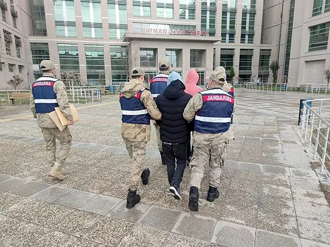 Batman İl Jandarma Komutanlığı ekipleri tarafından yapılan operasyon ile Y.A. ve H.A. isimli şahıslar Merkez ilçesindeki ikametlerinde yakalanmıştır. Batman Cumhuriyet Başsavcılığına sevk edilen Y.A. isimli şahıs adli kontrol şartı ile serbest bırakılmış olup, H.A. isimli şahıs çıkarıldığı mahkeme tarafından tutuklanarak Batman Ceza İnfaz Kurumuna teslim edilmiştir” denildi.