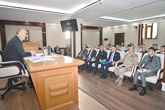 Yoğun kar yağışına ve doğal afetlere karşı yürütülecek çalışmaların ele alındığı toplantıda; Karayolları Şube Şefliği, İl Özel İdaresi ve Belediyeler tarafından gerekli tedbirlerin alınması ve yolların 7/24 açık bulundurulması, kış lastiği kontrollerine titizlikle devam edilmesi, ilimiz sınırları içerisinde trafik güvenliğine yönelik olumsuzluklar, vatandaşların can ve mal güvenliğinin korunması, yerleşim yerlerinde alınacak tedbirler, denetimde görevli personel ve ekip araçlarının yapacağı iş ve işlemler, bilgilendirme ve bilinçlendirme faaliyetlerinin ilgili kurum ve kuruluşlar tarafından titizlikle takip edilmesi ve uygulamada herhangi bir aksaklığa meydan verilmemesi, kış mevsimi süresince alınması gereken bütün tedbirlerin planlanması ile ilgili konular görüşüldü.