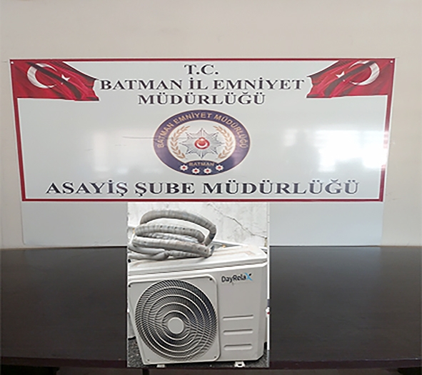 Batman Emniyet Müdürlüğü, Asayiş Şube Müdürlüğü ekipleri devriye gezdikleri sırada Kültür Mahallesi’nde bulunan işyerine ait klima motorunu çalmaya çalışan V.B. ve E.A.’yi suüçsü yakaladı. İşyeri sahibi hırsızlardan şikâyetçi olmazken hırsızlardan ele geçen malzemeler ise işyeri sahibine teslim edildi. Hırsızlar adli işlemlerinin ardından serbest bırakıldı.