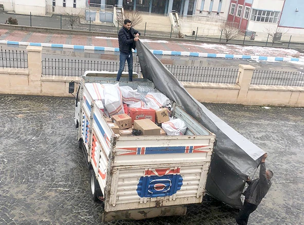 Kozluk Kaymakamlığınca deprem bölgelerine gönderilmek üzere battaniye, kuru gıda, kışlık giysi ve temizlik ürünlerinden hazırlanan yardım kolilerini taşıyan araç deprem bölgelerine doğru yola çıktı.