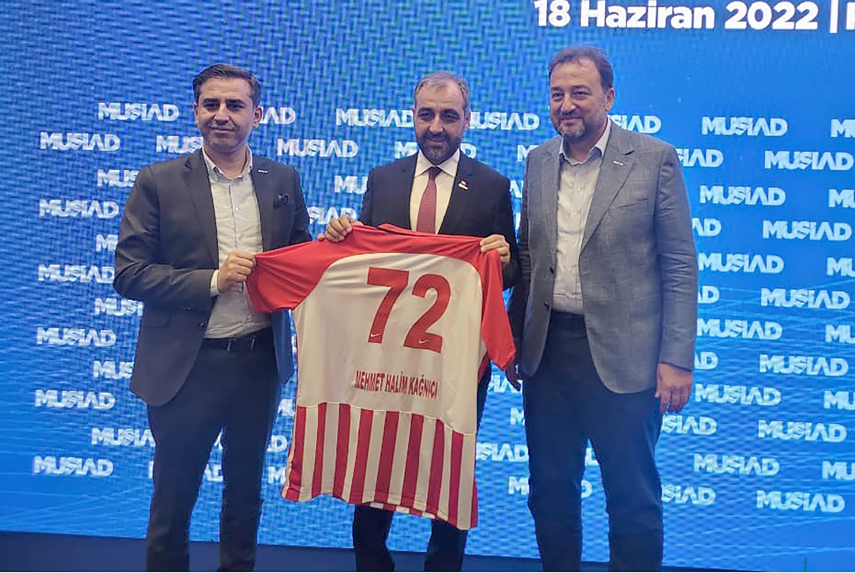 Başkan İraz genel idare kurulu toplantısı sonunda MÜSİAD genel başkanı Mahmut Asmalı ve Konya başkanı Mehmet Hilmi Kağnıcı’ya petrol Spor forması hediye etti.