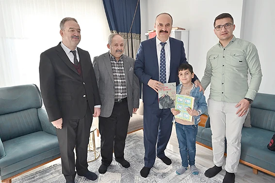 Şehit ailesiyle bir araya gelen Vali Ekrem Canalp, aile ile bir süre sohbet ederek, Bakan Mahinur Özdemir Göktaş’ın selamlarını iletip, minik Osman’ın ilk karne heyecanına ortak oldu. Minik öğrenciyi tebrik edip, başarılar dileyen Vali Canalp, kendisine çeşitli hediyeler verdi.