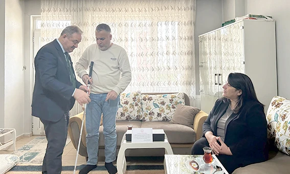 Batman Valisi ve Belediye Başkan Vekili Ekrem Canalp’in eşi Dr. Ayten Canalp, gazi olan Abdulhakim Öztürk’ü evinde ziyaret ederek akıllı baston takdim etti.