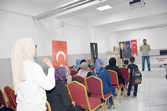 Yeni Mahalle İlkokulu Mevlana Konferans Salonu'nda gerçekleşen aile bilgilendirme toplantısına Hayat Boyu Öğrenme Şubesinden sorumlu İl Milli Eğitim Müdür Yardımcısı Fahrettin Nas, PİKTES+ Projesi il Koordinatörü M. Ali Kasal, Okul Müdürü Mehmet Şükrü Gündüz ve ilimizde ikamet eden yabancı uyruklu aileler katıldı.
