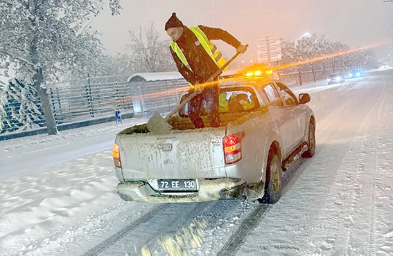 Batman Belediyesi, 2026 yılını kar yağışıyla birlikte karşılarken, kentte huzur ve güvenliğin sağlanması amacıyla ekiplerini artırarak karla mücadele çalışmalarını gece boyunca sürdürdü.