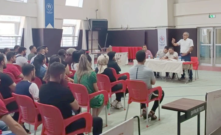Batman Gençlik ve Spor İl Müdürü Mehmet Şafi Özperk, Çok Amaçlı Spor Salonunda EYS kapsamında çalışan antrenörlerle bir araya geldi.