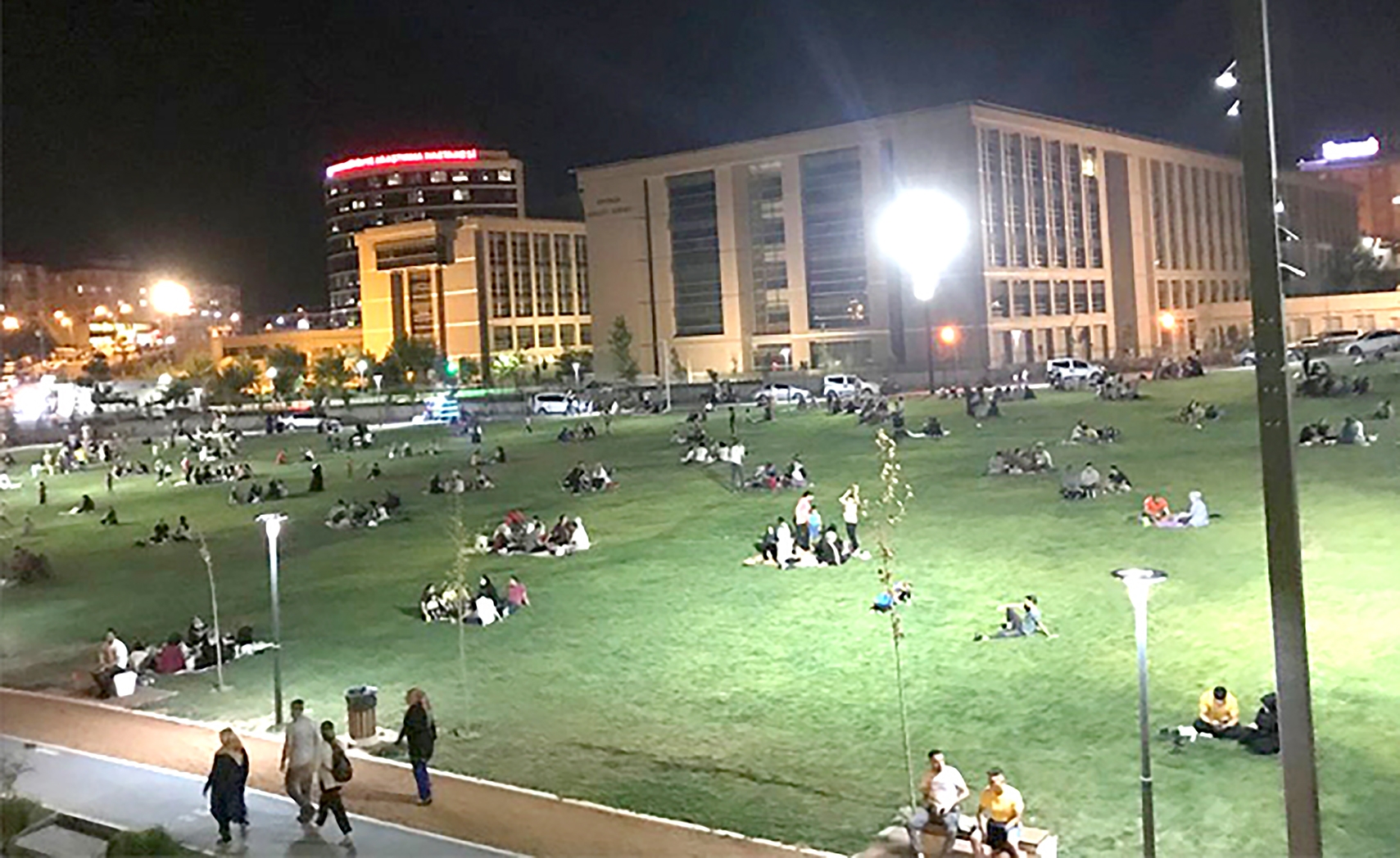 Yaz mevsiminin gelmesiyle evde bunalan vatandaşlar, akşam vakitlerini parkta geçiriyor.