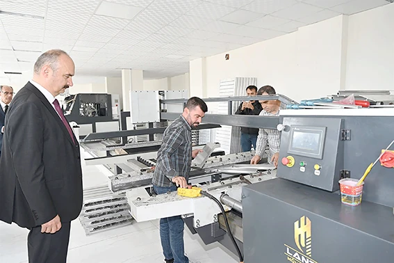İşyerinde incelemelerde bulunan Batman Valisi ve Belediye Başkanvekili Ekrem Canalp, firma yetkililerden üretim faaliyetleri hakkında bilgi aldı.