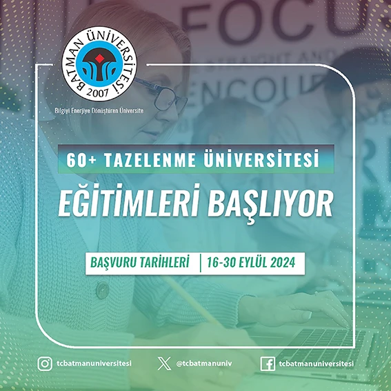 Batman Üniversitesi ve Aile ve Sosyal Politikalar Bakanlığı arasında imzalanan iş birliği protokolü kapsamında yürütülen "60+ Tazelenme Üniversitesi" projesi, Batman'daki 60 yaş ve üzeri bireylerin aktif ve sağlıklı yaşlanmalarını desteklemek amacıyla toplumsal ve sosyal hayata daha etkin katılımlarını teşvik ederken, eğitim alanında da Üniversitenin imkânlarından faydalanmasına da olanak sağlıyor.