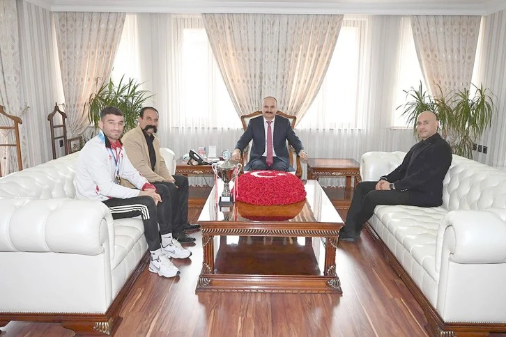 Batman Valisi ve Belediye Başkan Vekili Ekrem Canalp, Portekiz’in Lizbon kentinde düzenlenen ve Türk Milli Takımının 1. olduğu Dünya Kick Boks Şampiyonası’nda kendi klasmanında Dünya 3. olan 1955 Batman Belediyespor ve Milli Takım sporcusu İslam Üçan’ı 1955 Batman Belediyespor Başkanı Burak Eren ile birlikte makamında kabul etti..