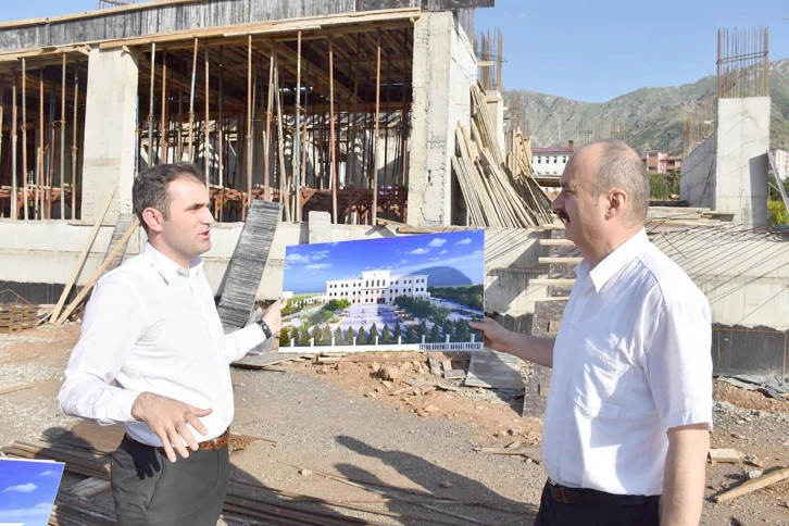 Sason Hükümet Konağın inşaatını inceleyen Vali Canalp, yüklenici firma yetkililerinden bilgi aldı.