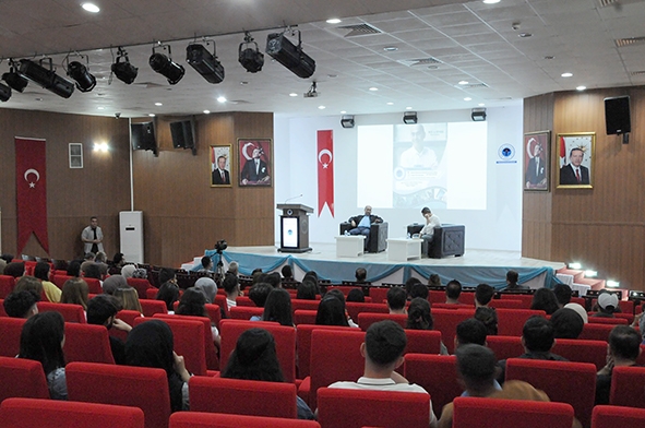 Batı Raman Kampüsü Rektörlük Konferans Salonunda düzenlenen ve Sinema ve Televizyon Bölümü öğretim üyesi Dr. Öğr. Üyesi Eşref Akmeşe’nin moderatörlük yaptığı söyleşiye, Batman Üniversitesi Rektörü Prof. Dr. İdris Demir, dekanlar, müdürler, akademik ve idari personel ile öğrenciler katıldı.