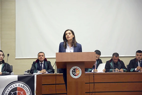 Batman Barosu Av. Tahir Elçi Konferans Salonu’nda yapılan genel kurul toplantısına Belediye Eş Başkanları Gülistan Sönük ve Yeşil Işık, Baro Başkanı Erkan Şenses ve yönetim kurulu üyeleri, sivil toplum kuruluşları, dernek ve oda başkanları ile Batman Barosu'na bağlı avukatlar katıldı.
